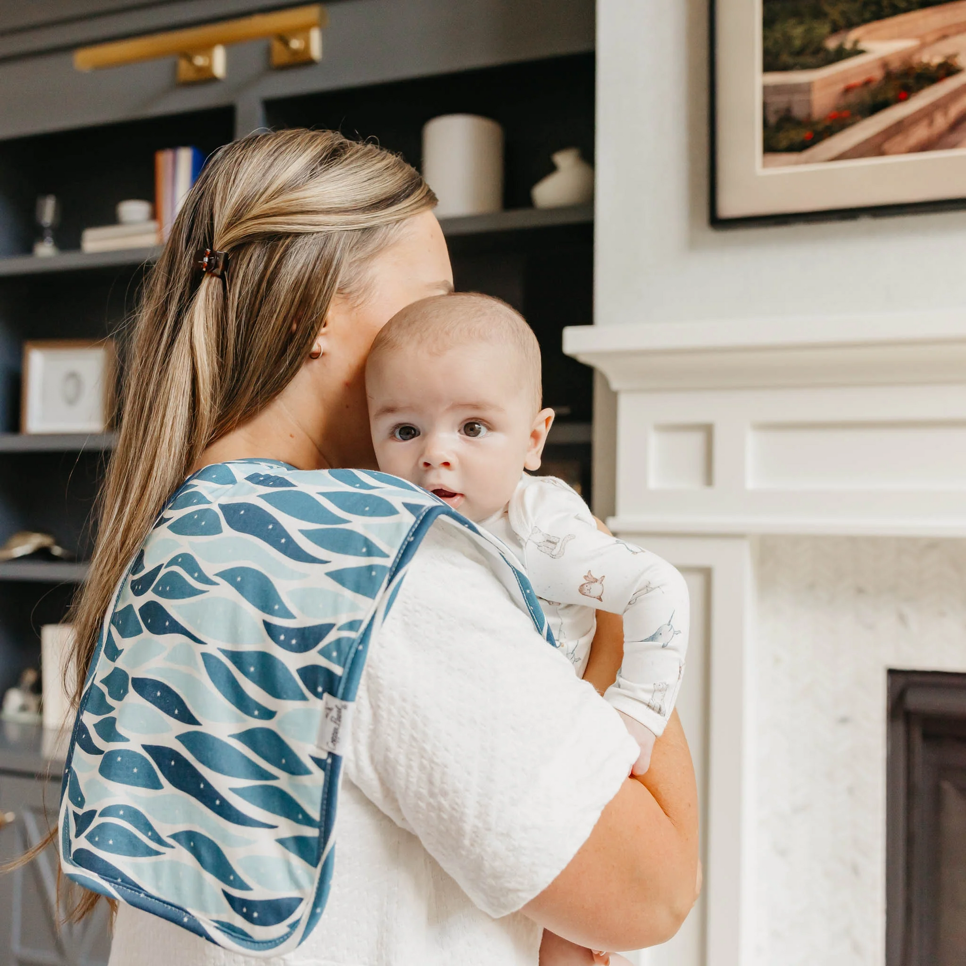 Absorbent Fleece Layer A middle fleece layer provides superior absorbency, stopping drool and spit up in their tracks. The dreaded leakage onto parent clothing is a problem of the past!