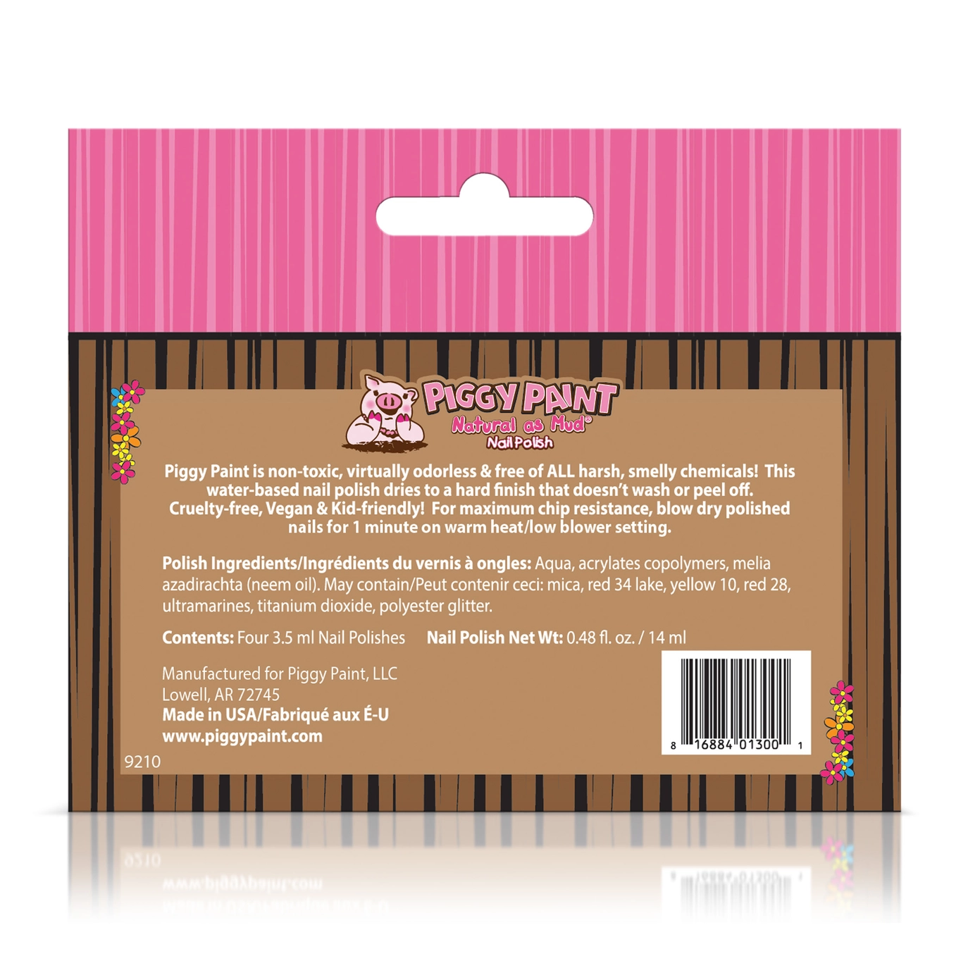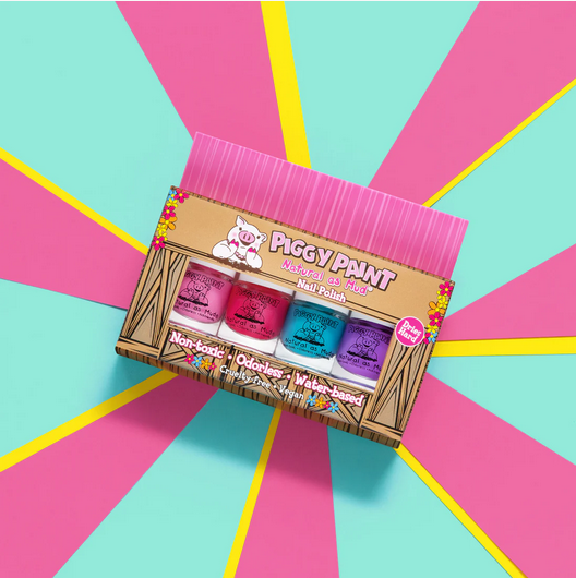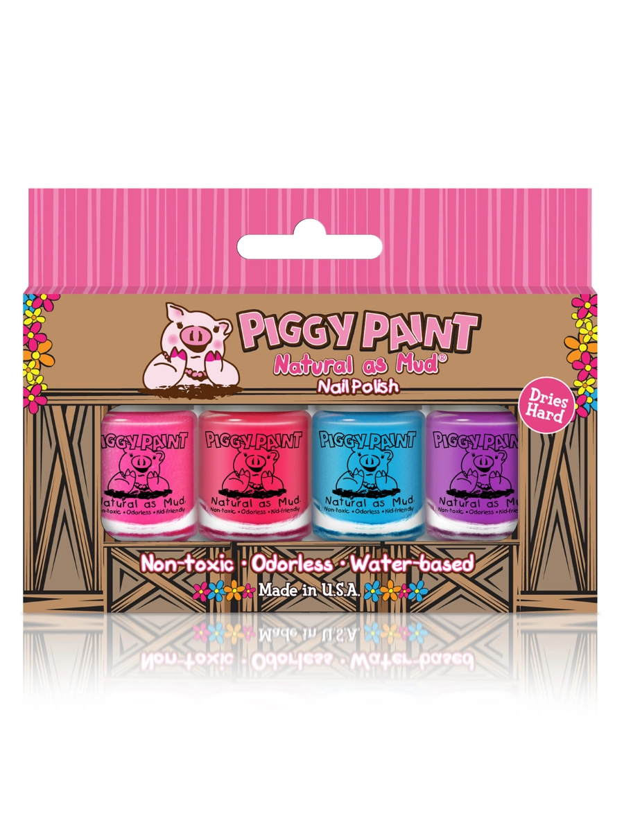 Piggy Paint nail polish is Non-toxic, Virtually Odorless, and Kid-friendly! This Advanced, Water-based formula Dries Hard - and Doesn’t Wash or Peel off. Plus, it's Safe for Babies, Toddlers, and Kids of all ages! Piggy Paint is a Premium brand that is trusted by parents (& created by a Mom!). ALL the Fun, with NO parabens, phthalates, or harsh chemicals!