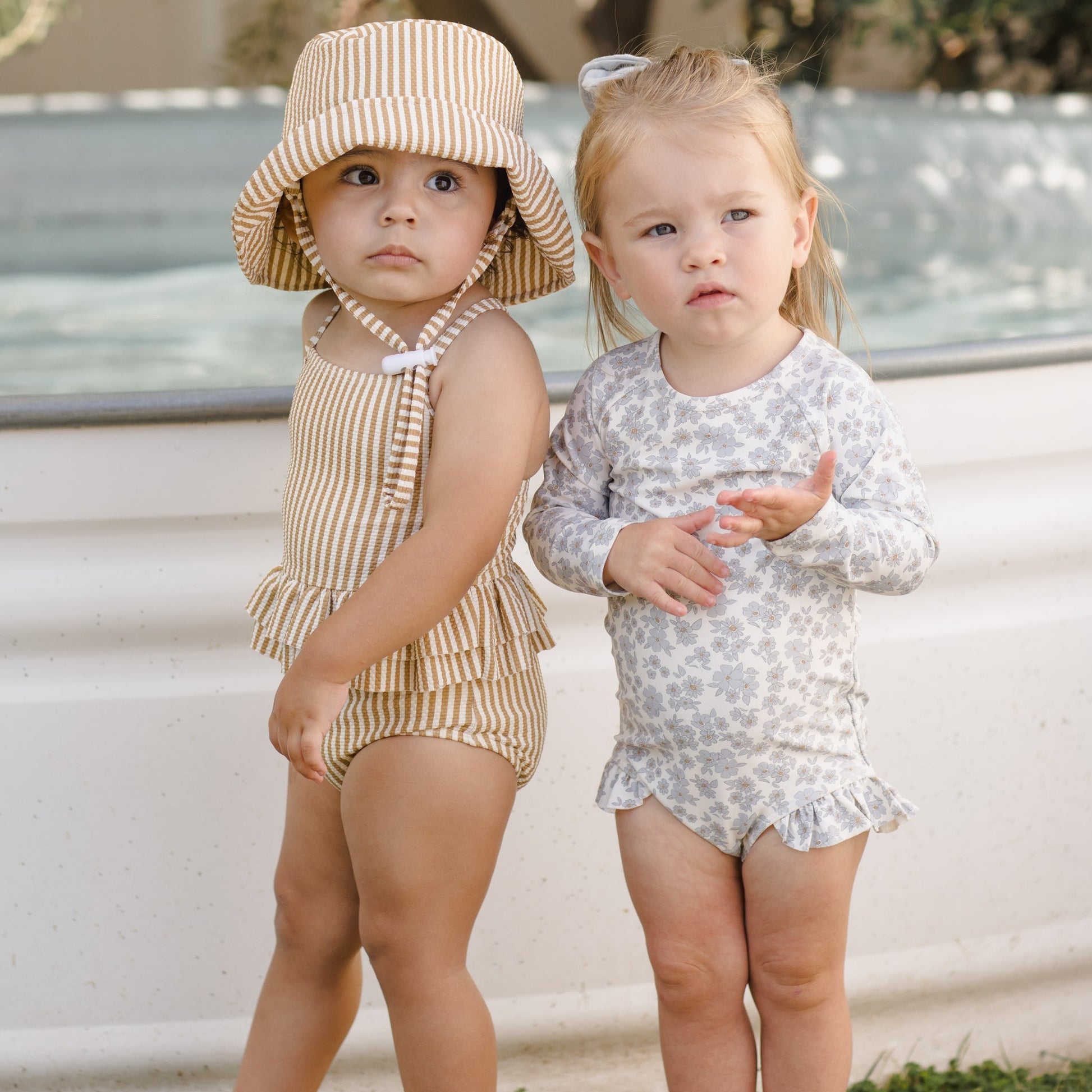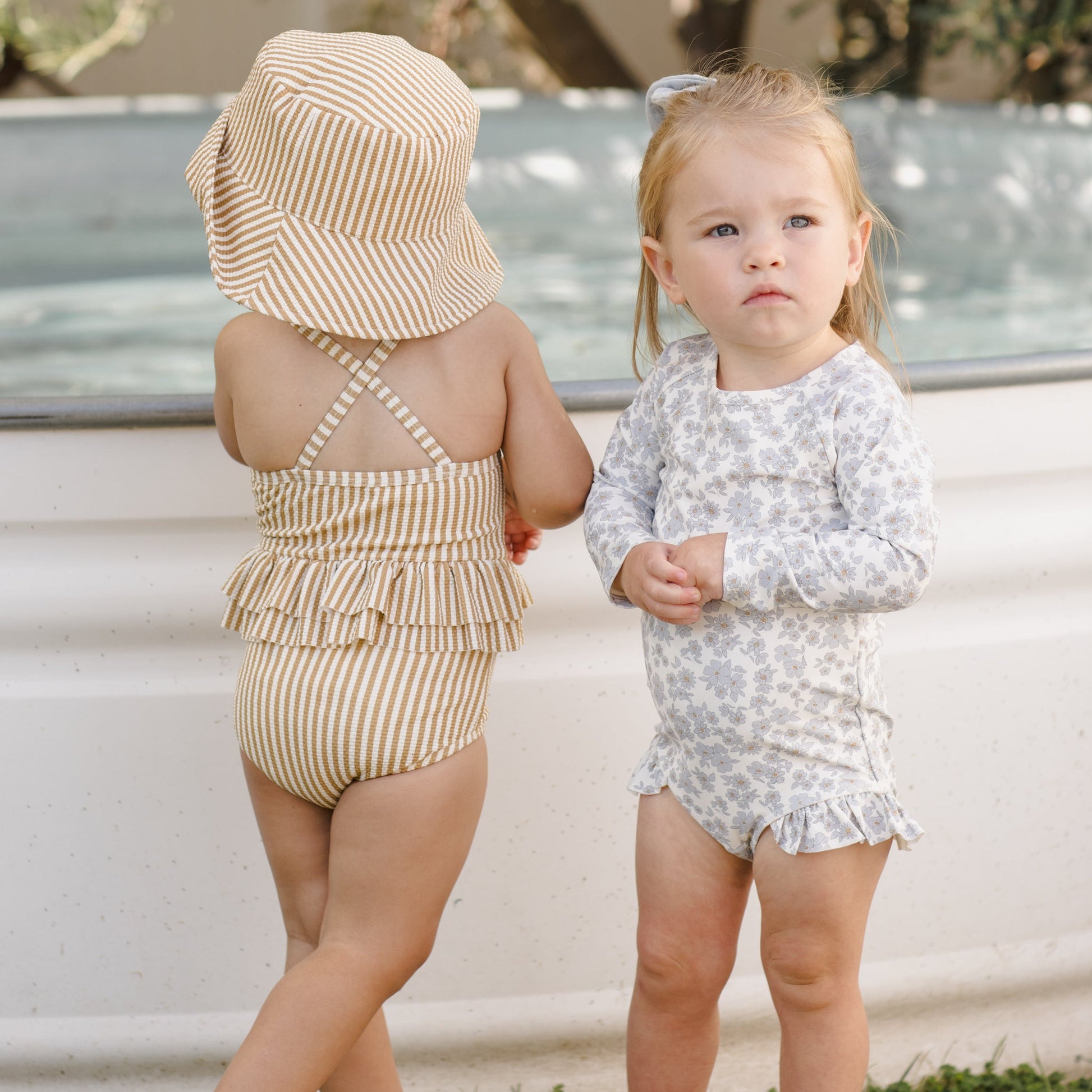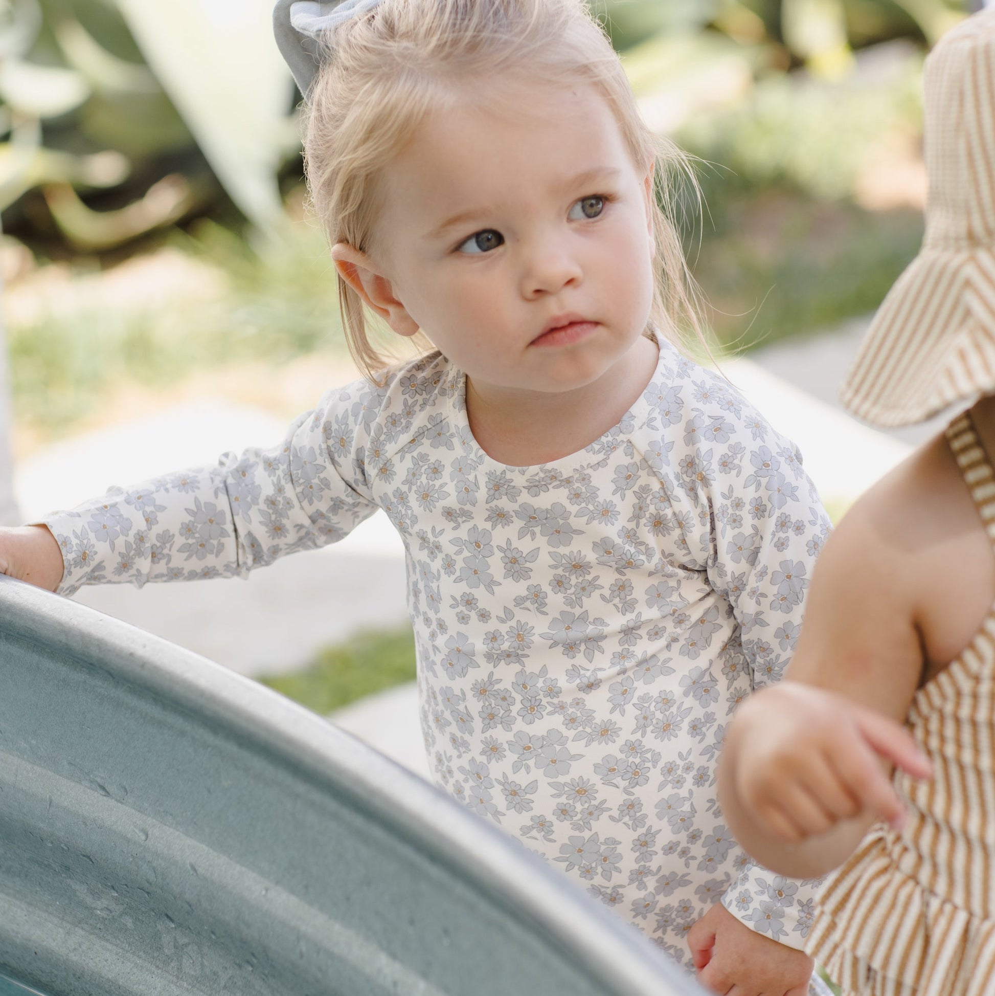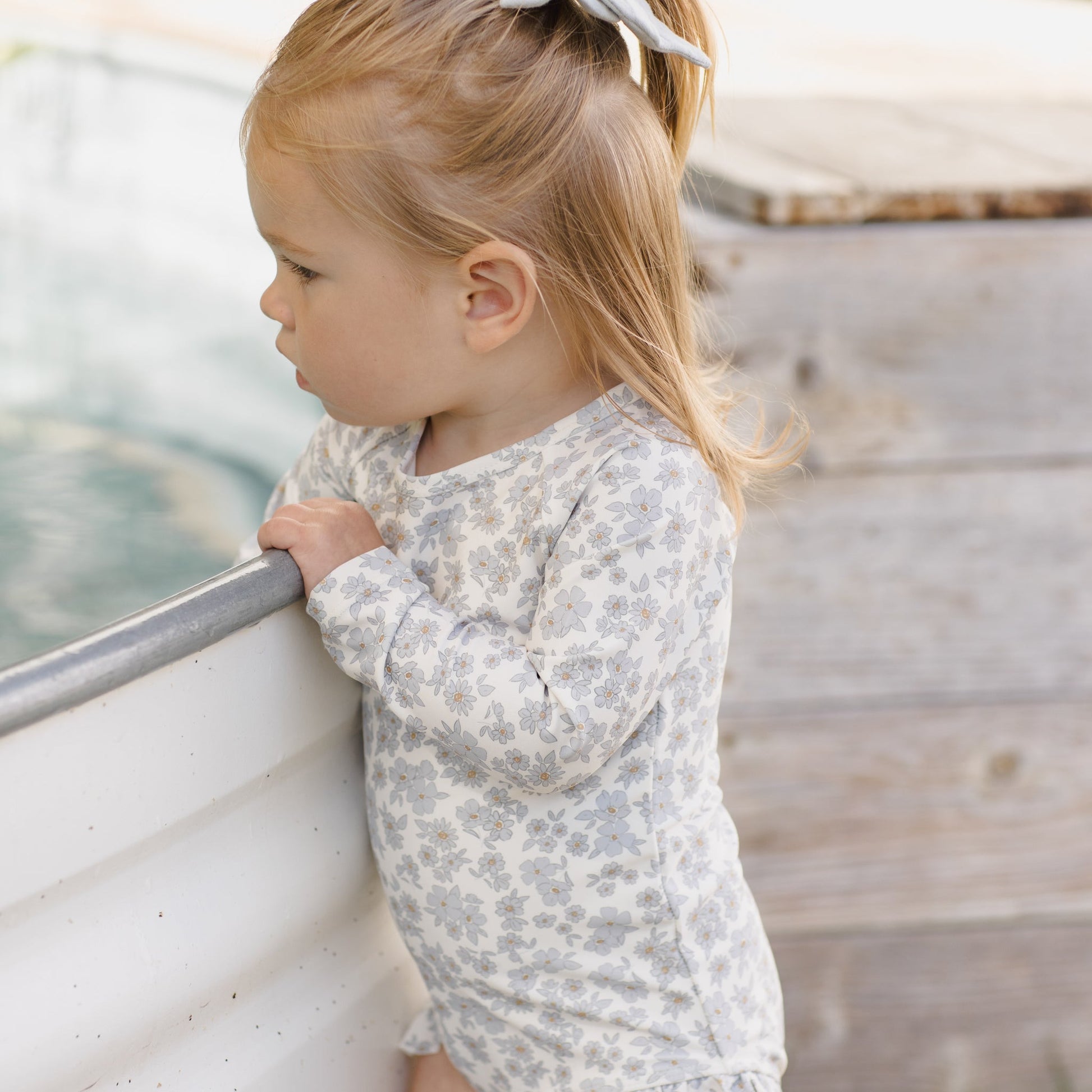 Featuring our ‘blue floral’ print on ‘ivory’ hue - floral bunches come sweetly together for your little gals!