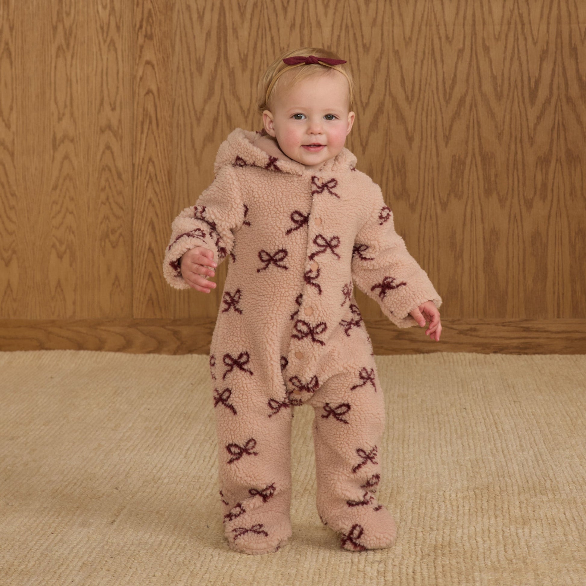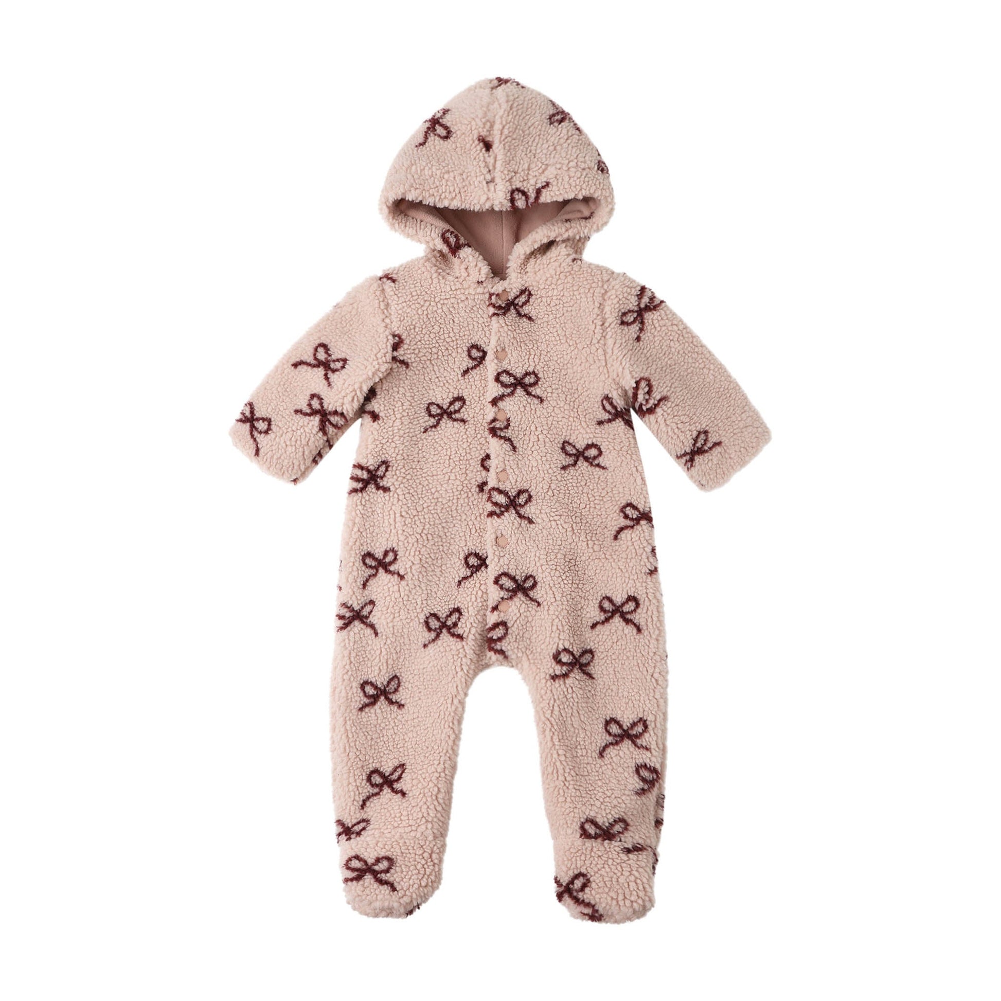 This adorable fleece jumpsuit is the perfect outfit to keep your little one warm and cozy this winter. It features soft shearling fabric, a fleece lining, and convenient snap buttons down the front for easy dressing.