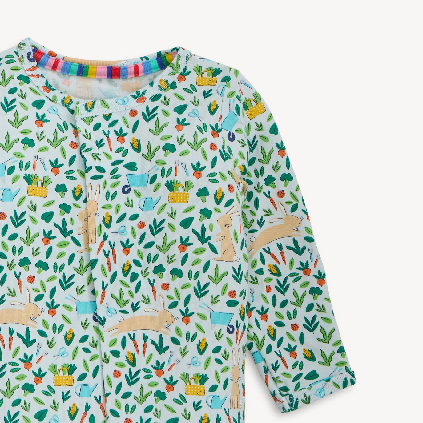 - magnetic closures: magnets line the seam from the neck to upper thigh for sizes up to 0-3m & from neck to crotch for sizes 3-6m and up.