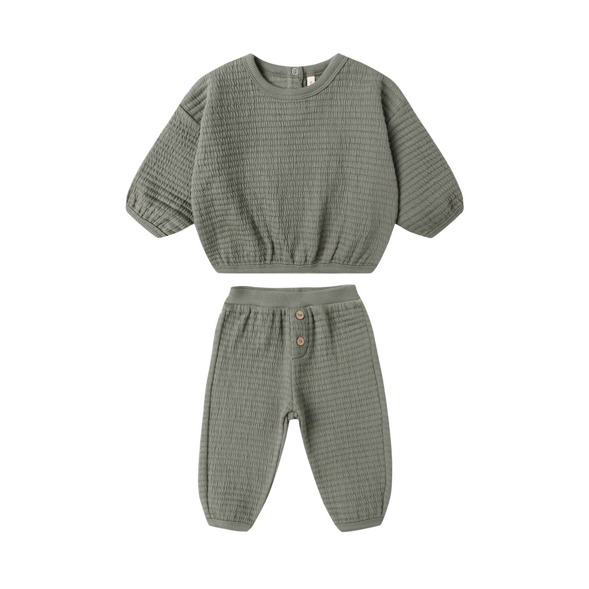 Our textured sweat set includes a softest long sleeve top and cozy pants, perfect for everyday wear!