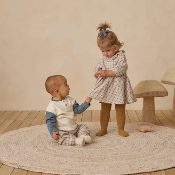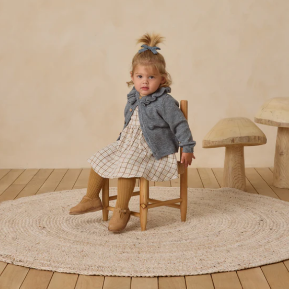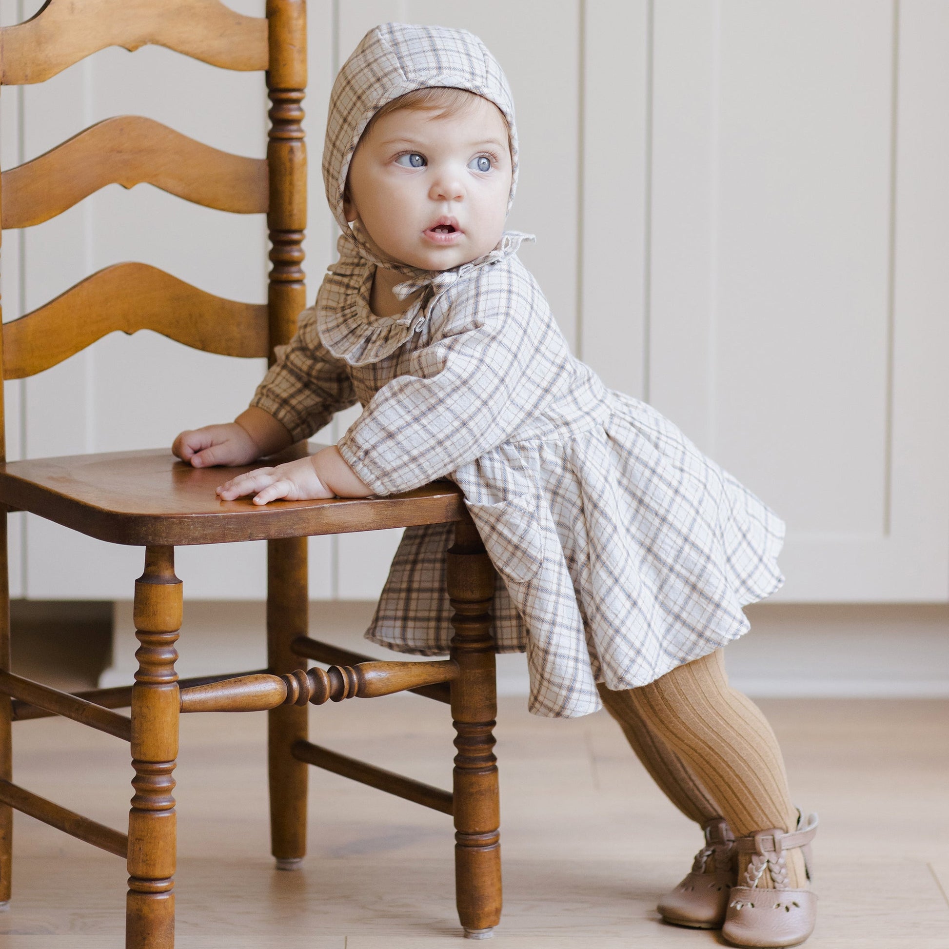 Rib knit footed tights made from soft, stretchy fabric to keep little ones warm. Layer under one of our dresses for an extra sweet look.