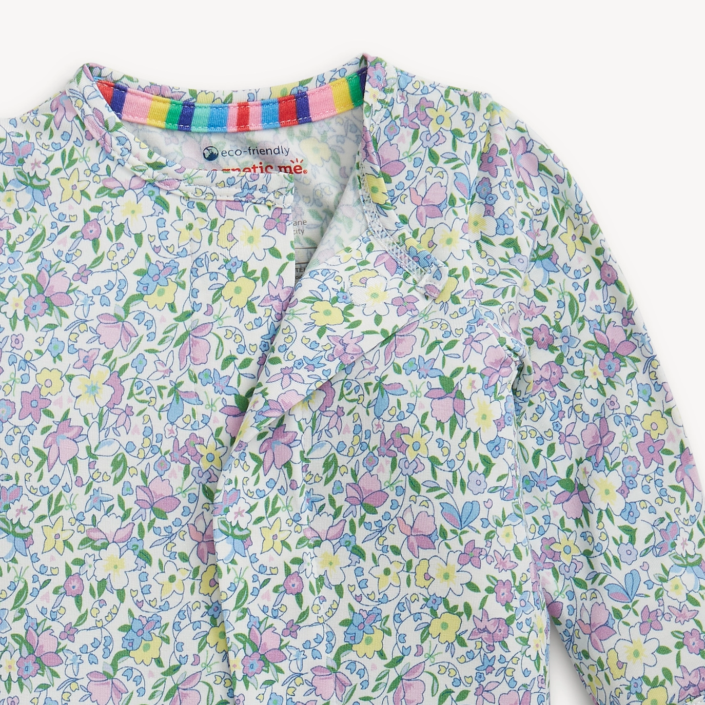 - magnetic closures: magnets line the seam from the neck to upper thigh for sizes up to 0-3m & from neck to crotch for sizes 3-6m and up.