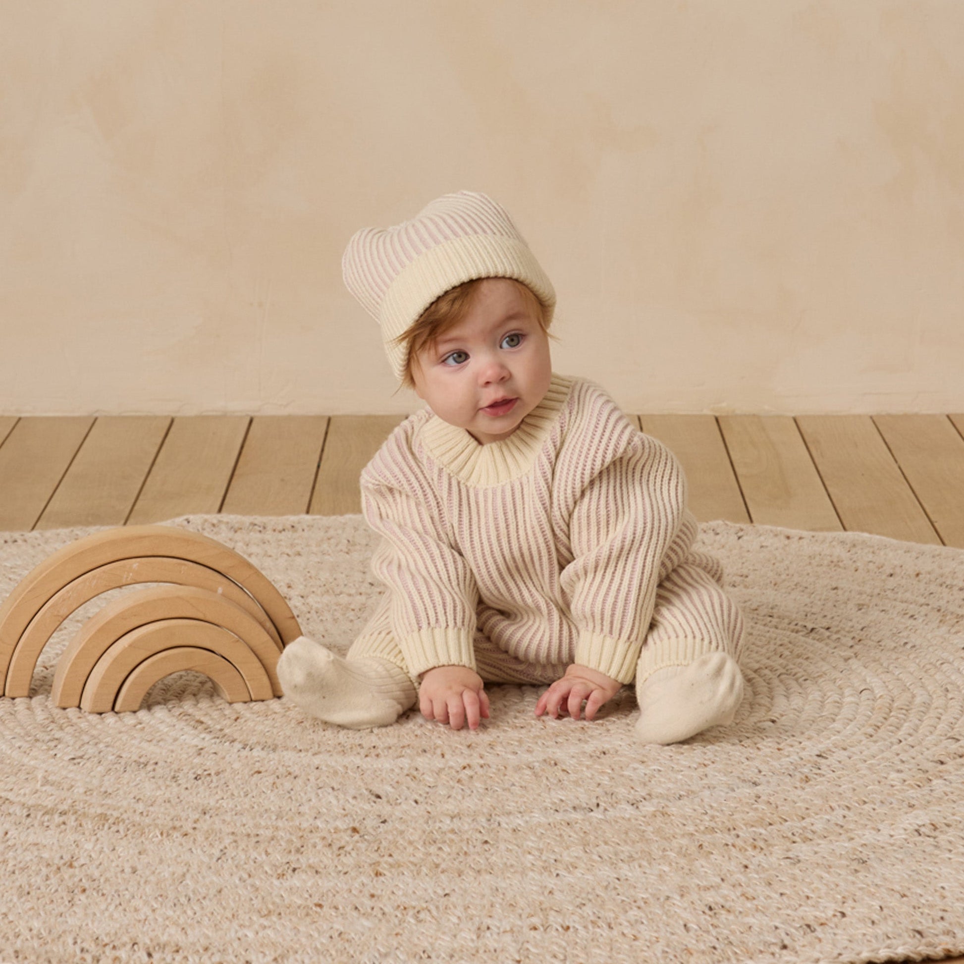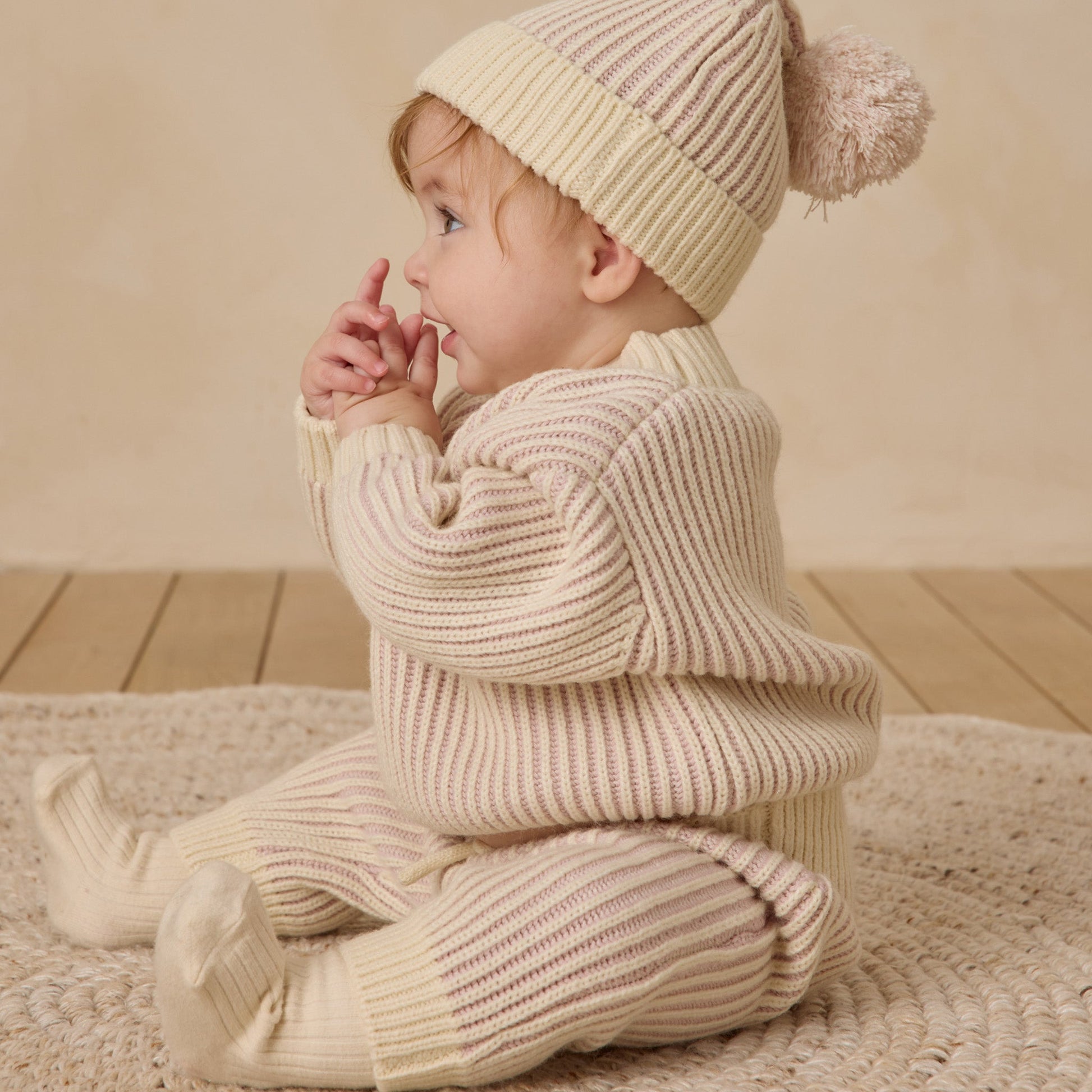 Chunky Knit Pants with contrast ribbing and fixed front tie detail—pairs perfectly with our Relaxed Knit Sweater.