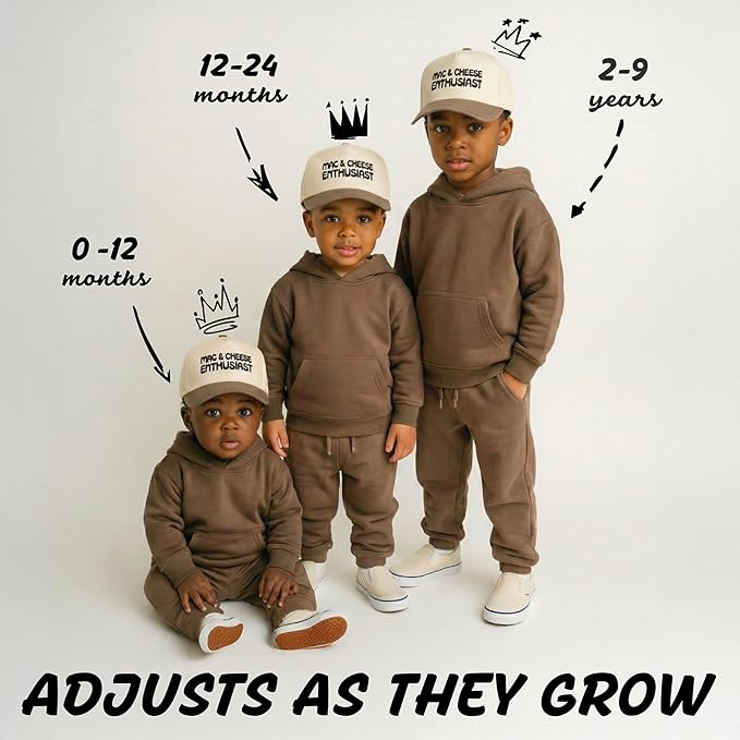 Adjustable Snapback Fit: Available in three sizes to grow with your child:
