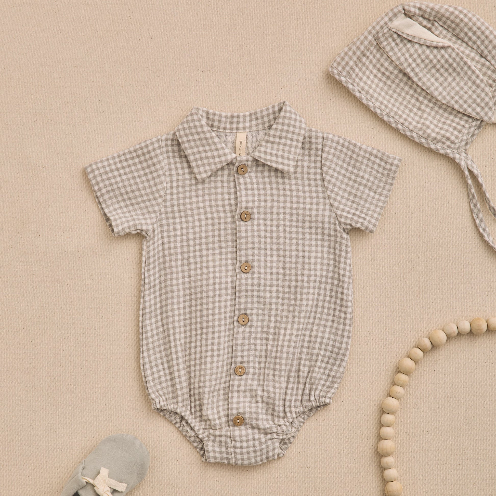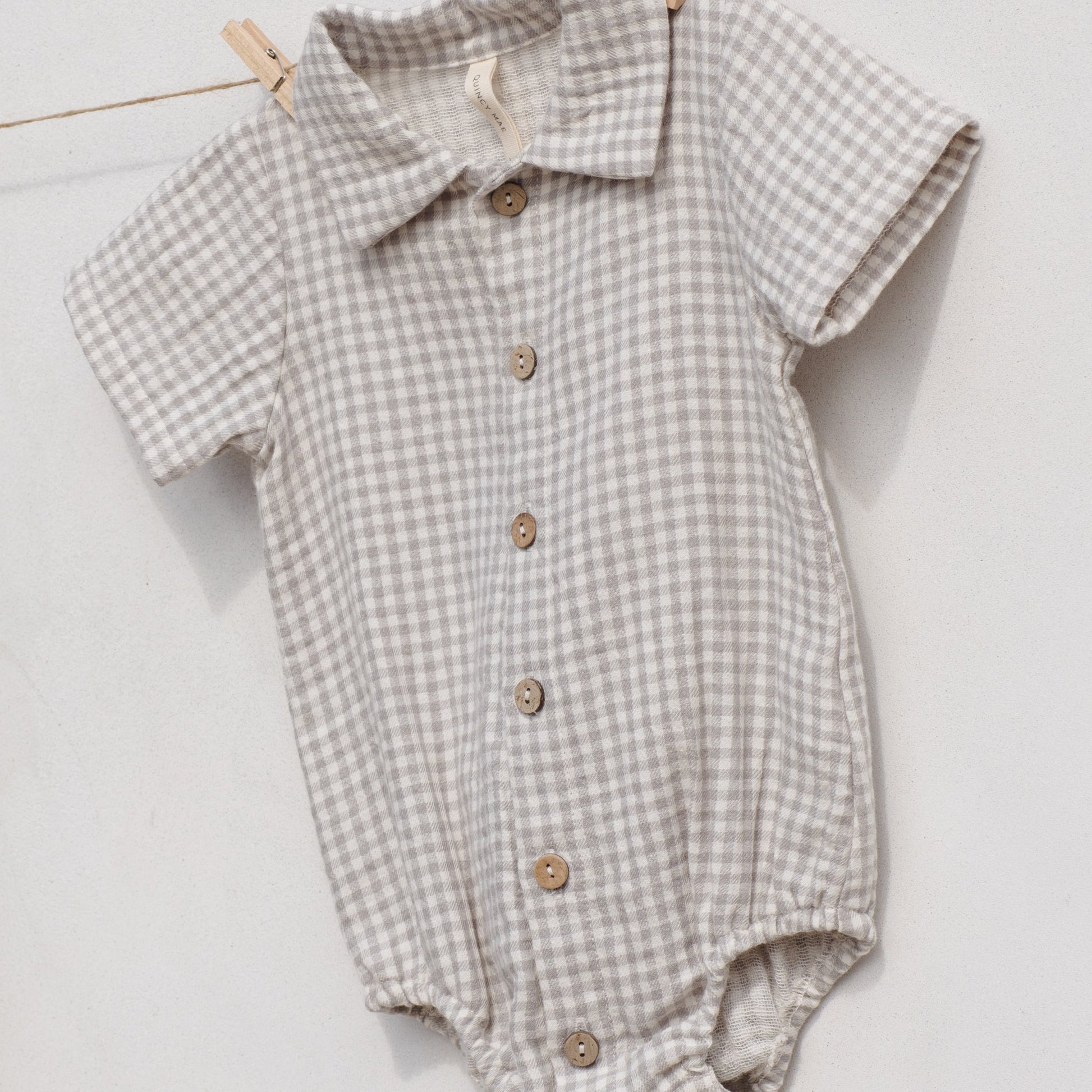 Our bubble Matteo Romper is the perfect look for the most elegant occasions. Made from our soft cotton, this classic fit features a fold-over collar, coconut buttons along the front and hidden bottom snaps for easy changes.