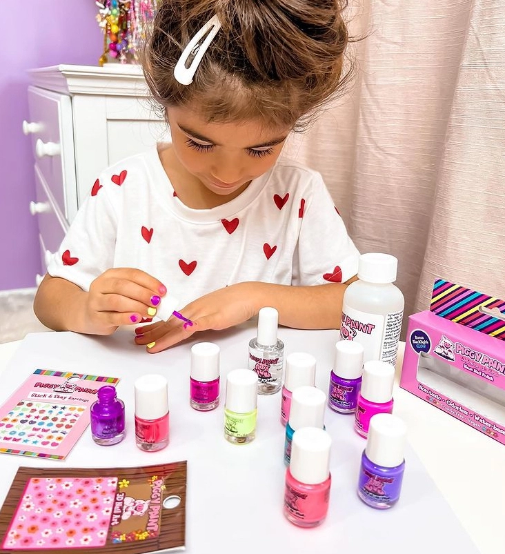 Piggy Paint nail polish is Non-toxic, Virtually Odorless, and Kid-friendly! This Advanced, Water-based formula Dries Hard - and Doesn’t Wash or Peel off. Plus, it's Safe for Babies, Toddlers, and Kids of all ages! Piggy Paint is a Premium brand that is trusted by parents (& created by a Mom!). ALL the Fun, with NO parabens, phthalates, or harsh chemicals!