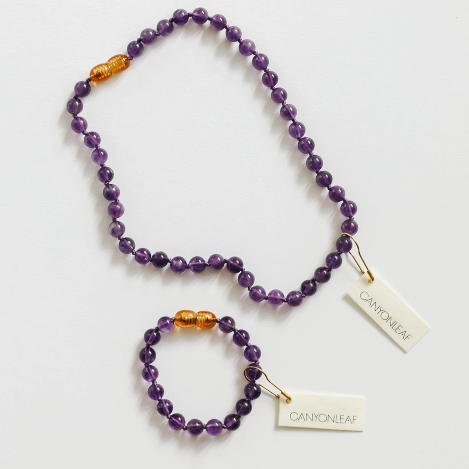 Wearing Mother Nature's Art is always in style, paired with the wonderful natural healing benefits of keeping gemstones close to our skin, we introduce our Pure Amethyst pieces. Each one carefully handspring and hand knotted between each bead, these simple little treasures are available in sizes for the whole family.