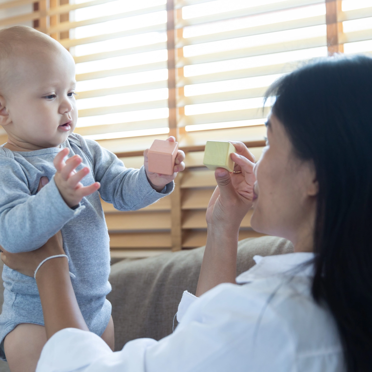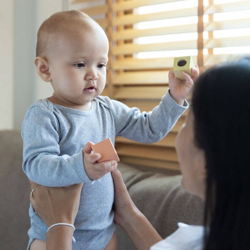 This set of 6 sensory blocks consists of 2 visual, 2 auditory and 2 tactile blocks. This toy stimulates touch, sight and sound while encouraging kinesthetic learning