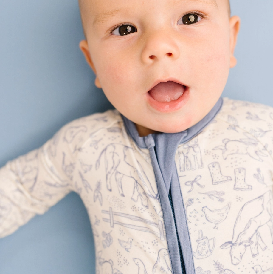 Thicker bamboo (260g) Buttery soft, lightweight, breathable, and stretchy Fold over mittens up to 12-18M Fold over footies Features a 2-way zipper for easier changes Designed with a snug fit for safety Fabric: 95% viscose bamboo, 5% spandex No flame retardants or chemicals Machine wash, tumble dry